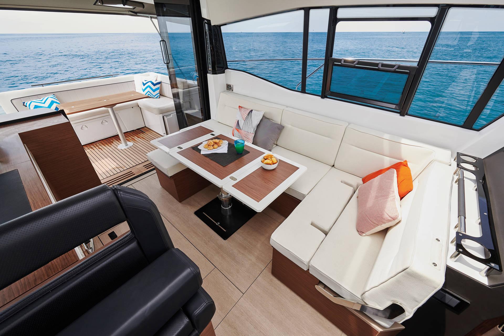 • Open Deck Design: Features a spacious, retractable roof that allows for all-weather cruising and maximum sun exposure.